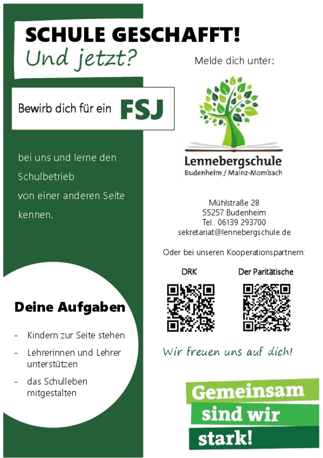 Bewirb dich für ein FSJ bei uns und lerne den Schulbetrieb von einer anderen Seite kennen!