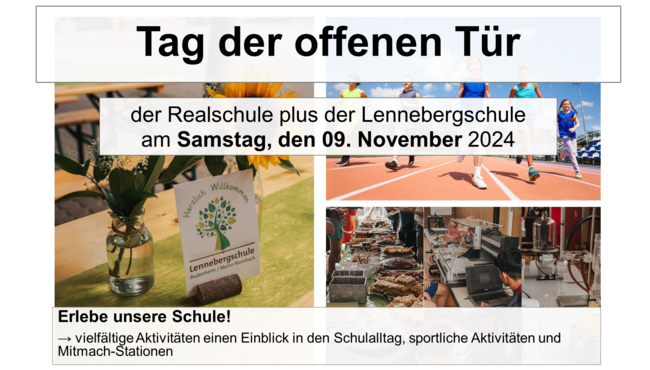 Einladung zum Tag der offenen Tür der Realschule plus in Budenheim: Samstag, den 09. November 2024