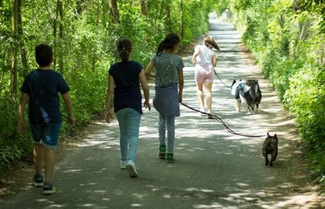 Das Gassigehen an lockerer Leine haben wir bei schönstem Wetter im Lennebergwald geübt.